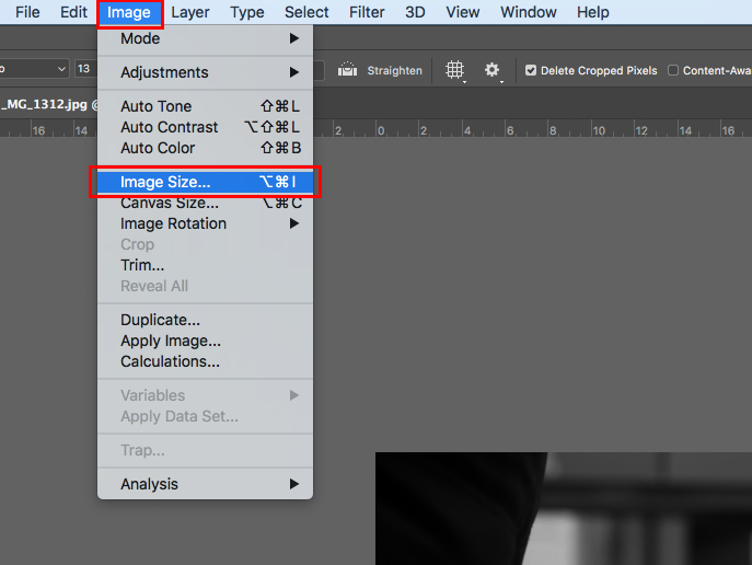 2. Select Image in the navigation bar, Image Size... (⌥⌘I).